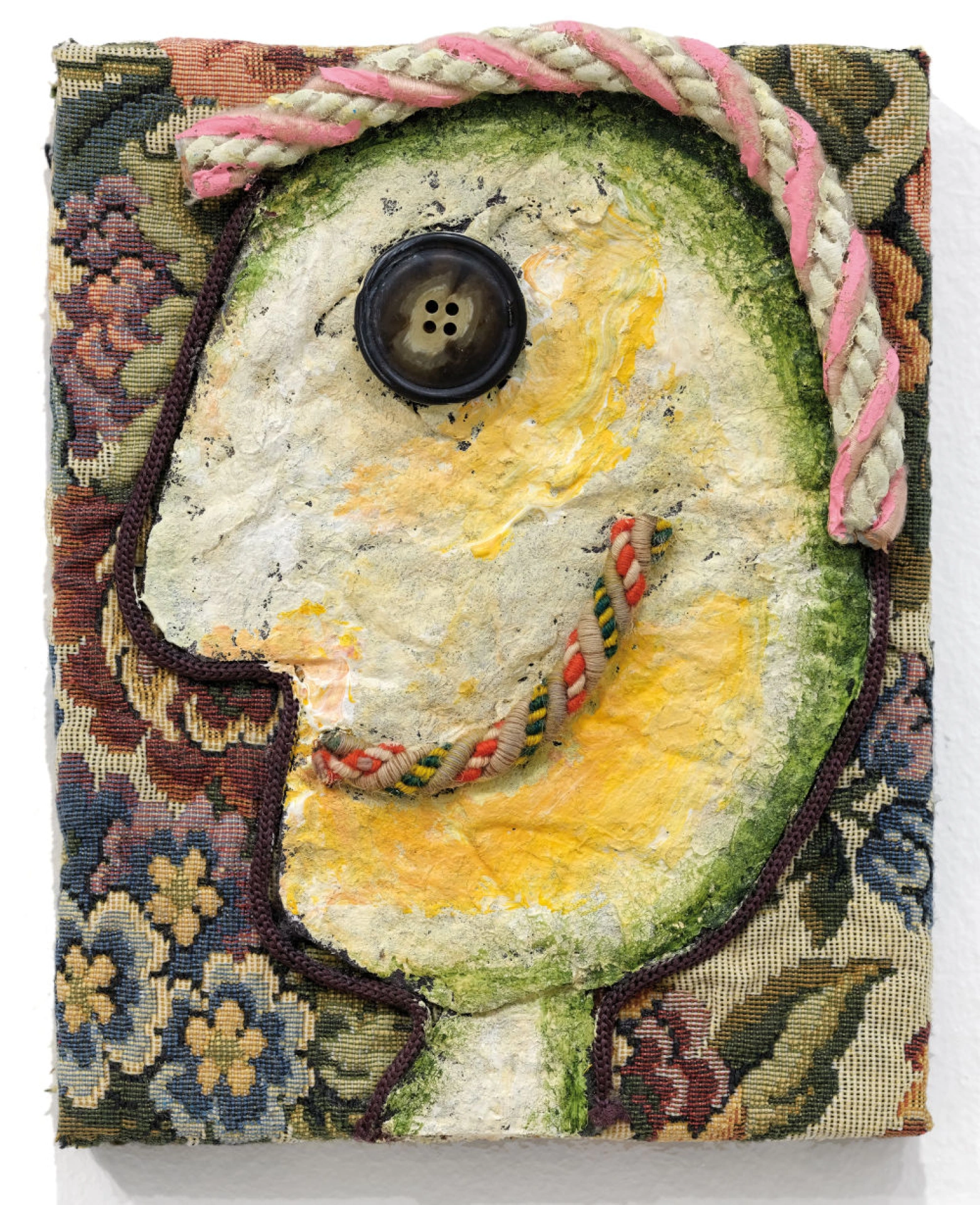 Technique : technique mixte avec des morceaux de verre et des garnitures sur papier peint
