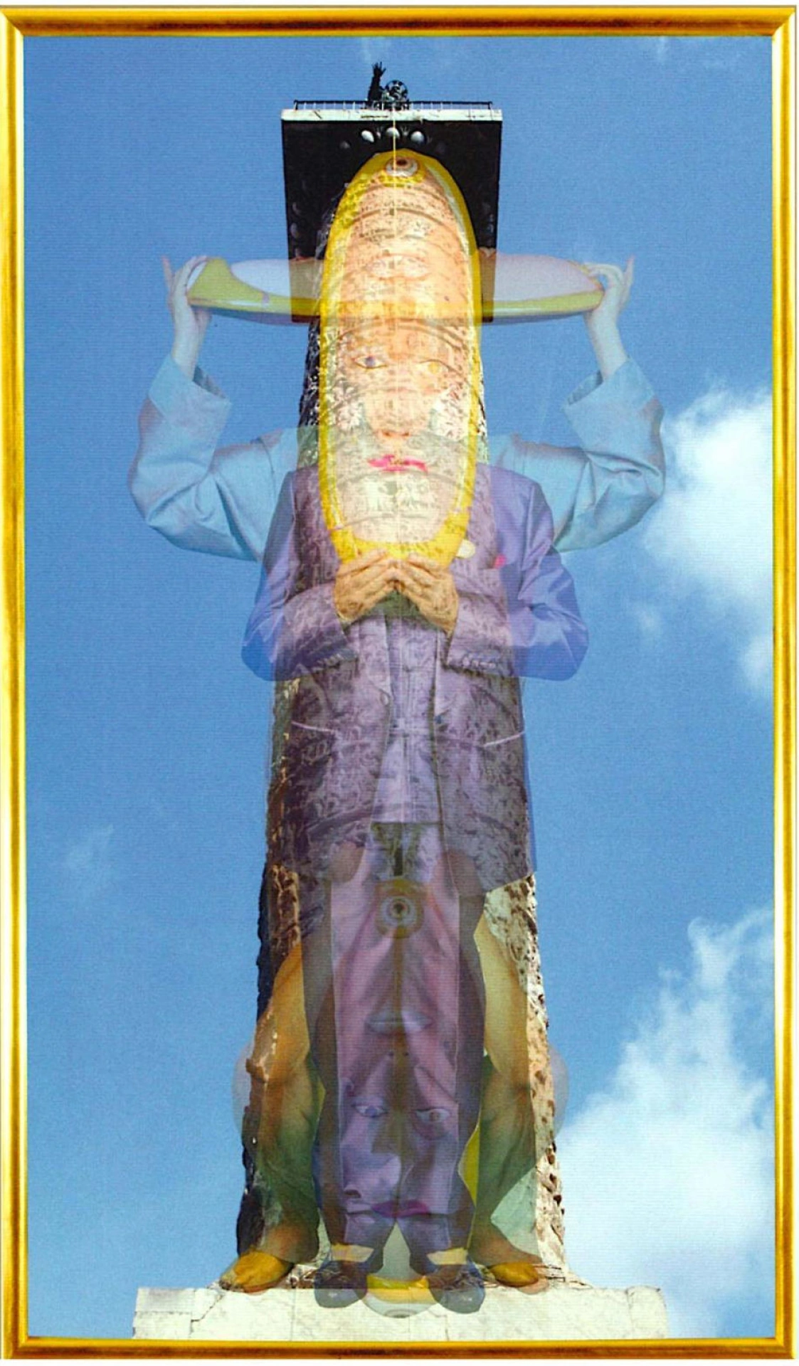 Questa opera di Luigi Ontani è di grandi dimensioni e rappresenta la foto di Ontani con una maschera tra le mani e in diverse posizioni.. Queste foto sono sovrapposte alla Colonna Traiana, mirabile esempio di scultura Romana attribuita al grande architetto Apollodoro di Damasco attivo a Roma durante l'impero di Traiano e del cui foro fu il progettista e direttore dei lavori.