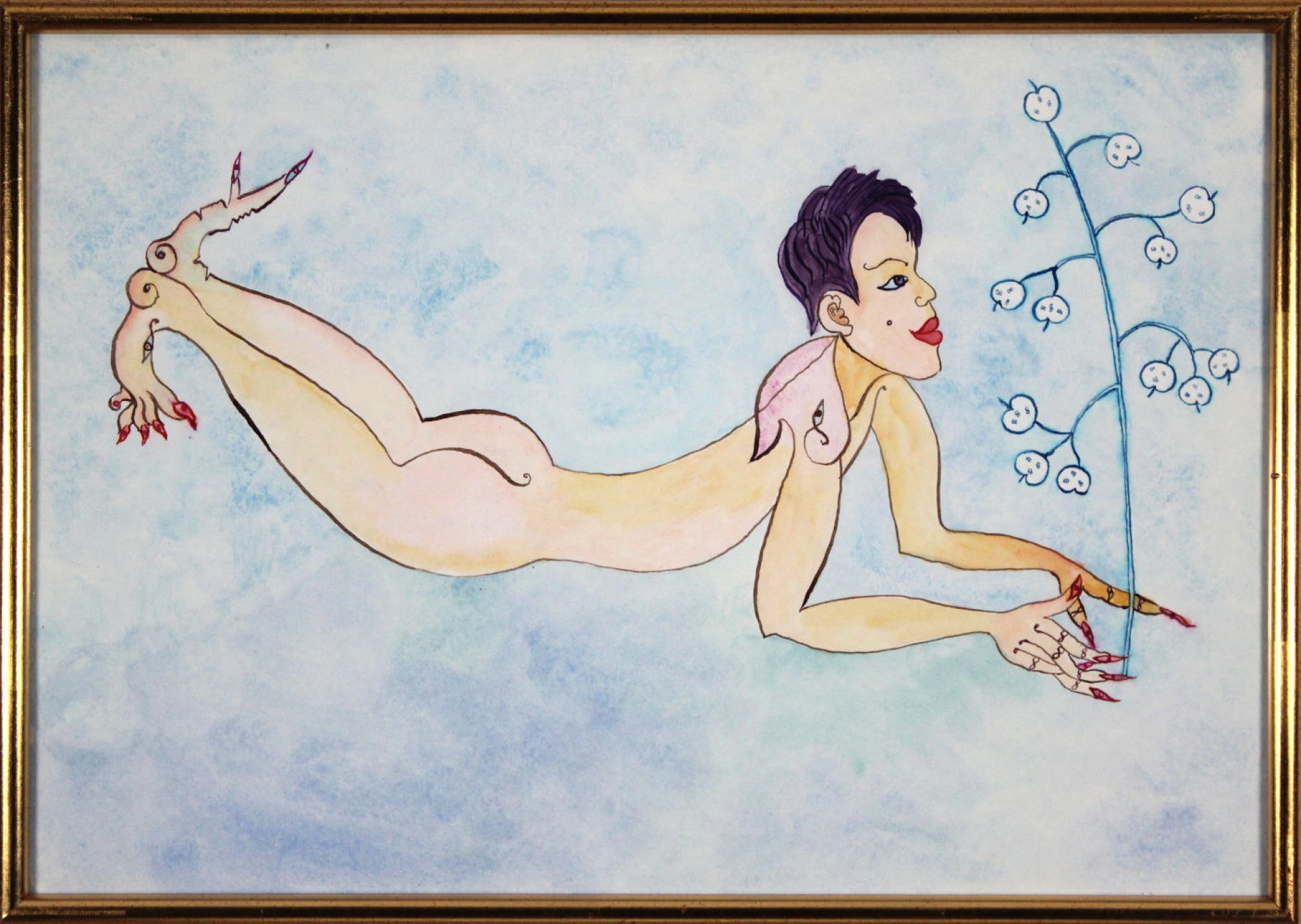 Dimensions : acquarello cm 52x37, maschera cm 56x23x15, foto lenticolare diametro cm 70