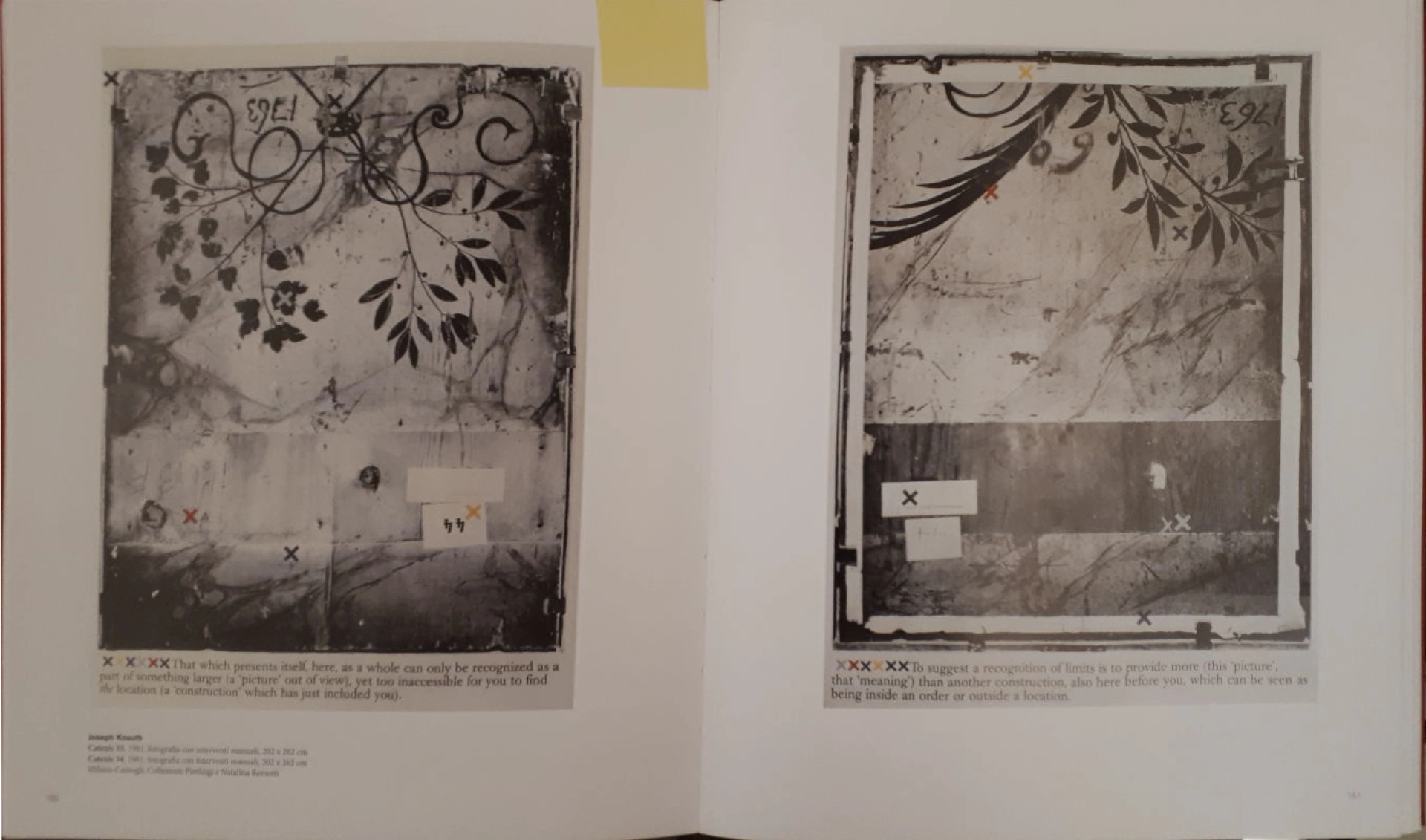 Abbiamo recentemente acquisito due opere di Joseph Kosuth della serie dei "Cathexis". La parola "Cathexis" deriva dal greco antico ed aveva il significato di uno stato mentale stabile o di controllo. Anche in filosofia si parlava di "Cathexis" ed era riferita ad una disposizione stabile dell'anima o del corpo